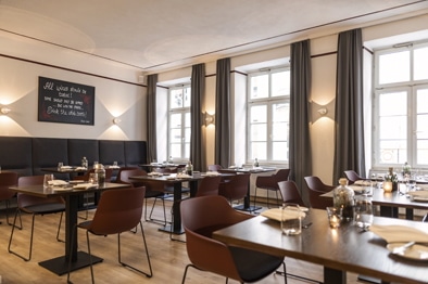 Hier werden marktfrische, regionale Produkte und anspruchsvolle Speisen serviert und dies umrahmt von einem Interieur aus modernem Design und einer lässigen Note. Das Weinangebot ist vor allem aus deutschen und europäischen Anbaugebieten.