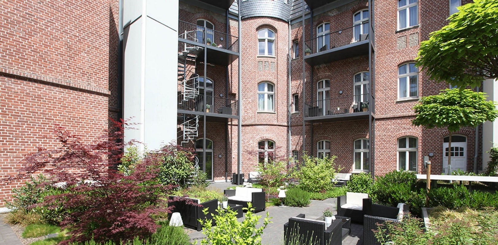 THE RED bietet ein modernes und exklusives Wohnumfeld in einer einzigartigen historischen Atmosphäre: Das Apartmenthotel befindet sich im Regierungsviertel, direkt gegenüber des nordrhein-westfälischen Landtags und somit unmittelbar am Rhein.