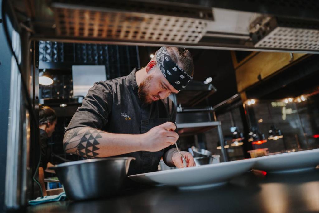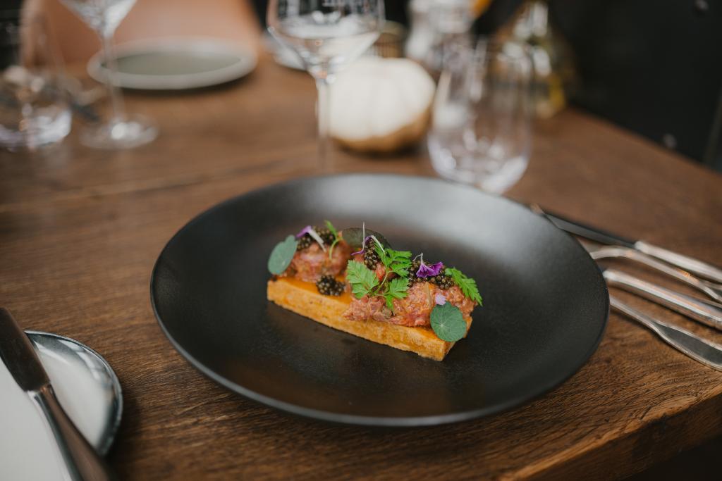 Ganz nach dem Thema knusprig, weich & cremig, in scharf, süß, sauer oder salzig, jongliert der amerikanische Küchenchef und sein Team aus aller Welt am offenen Holzkohle-Grill mit Aromen und Ingredienzien. Jedes Gericht eine Komposition kontrastreicher Geschmacksrichtungen und Texturen –und das nach einem Zero-Waste-Concept. Entdecken Sie ein Ensemble aus Geschmack und Show, Einzigartigkeit und Heimat, Empathie und Kreativität – oder einfach gesagt: