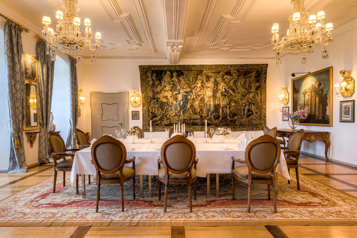 Das Michelin-Gourmet Restaurant „Le Frankenberg“ befindet sich in den historischen Räumlichkeiten von Schloß Frankenberg, im Südflügel des Gebäudes. Seit 2014 ist das Schloss Teil des European Heritage Projects by Peter Löw und wurde bis heute umfassend renoviert und instandgesetzt. Das Konzept beruht auf dem Schaffen einer fundamental außergewöhnlichen Atmosphäre und wird durch die Orientierung an historischem Vorbild sowie der Liebe zum Detail lebendig. Le Frankenberg bietet eine Location inmitten historischer Mauern, umgeben von Weinbergen und der Natur. Das Herzstück des Restaurants ist das Turmzimmer, in dem Sie sich ganz den Eindrücken hingeben und in eine andere Zeit entführen lassen können. Eine mystische Erfahrung, inspiriert von der Vergangenheit und Historie des Schlosses. Die perfekte Kombination aus Ambiente, exquisiten Gerichten und einer perfekt abgestimmten Weinbegleitung schafft ein Erlebnis, das über Luxus hinausgeht. So kommt fernab des Alltags ein angenehmes Gefühl von Entspannung und Wohlbefinden auf. Le Frankenberg ist ein einzigartiger Ort, an dem das Essen zu einem Kunstwerk und das Speisen zu einer einmaligen Erfahrung wird.