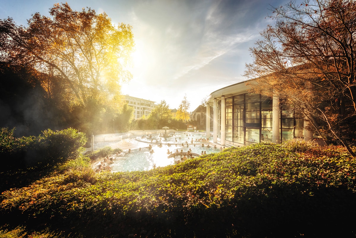 Auf mehr als 4.000 qm bietet die Caracalla Therme viel Platz für wohltuende Entspannung und ausgiebiges Badevergnügen im heißen Thermalwasser. Die Badelandschaft bietet neben den attraktiven Badebecken eine Felsengrotte mit heißem und kaltem Wasser, ein erholsames Aromadampfbad und einen Sole-Inhalationsraum. Im großzügigen Außenbereich befinden sich zwei Marmorbecken, ein Strömungskanal, Massagedüsen und zwei Whirlpools. Ein besonderes Highlight ist die römische Saunalandschaft mit Mosaiken und Säulen sowie zahlreichen Museumsstücken und Antiquitäten. Auch der Außenbereich im Schlossgarten mit zwei Blockhaussaunen lädt zum Entspannen und Wohlfühlen ein. www.carasana.de